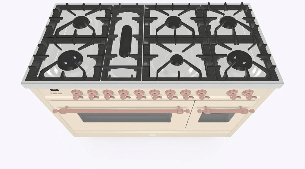 - Тип конфорок: 7 газовых, горелка для рыбной кастрюли