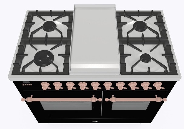 • Тип конфорок: 4 газовые конфорки, WOK конфорка, жарочная поверхность Fry Top