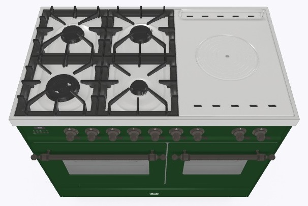 • Тип конфорок: 4 газовые конфорки, WOK конфорка, жарочная поверхность Coup de Feu