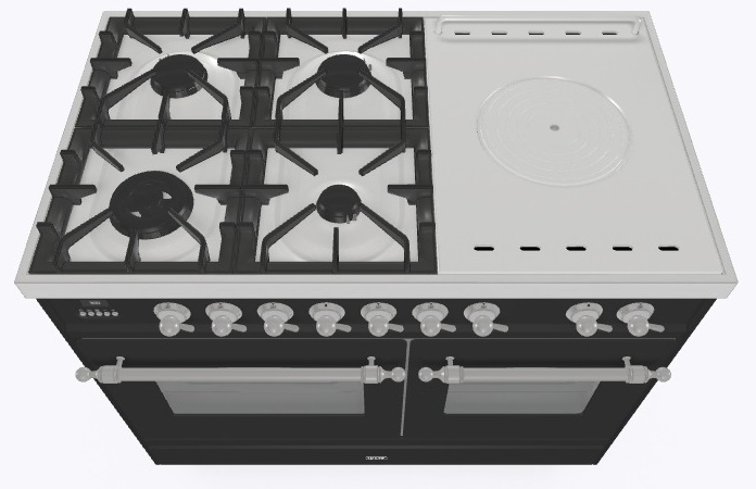 • Тип конфорок: 4 газовые конфорки, WOK конфорка, жарочная поверхность Coup de Feu