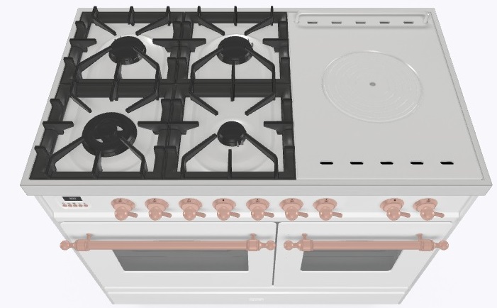 • Тип конфорок: 4 газовые конфорки, WOK конфорка, жарочная поверхность Coup de Feu