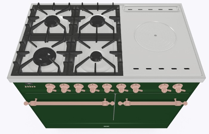 • Тип конфорок: 4 газовые конфорки, WOK конфорка, жарочная поверхность Coup de Feu