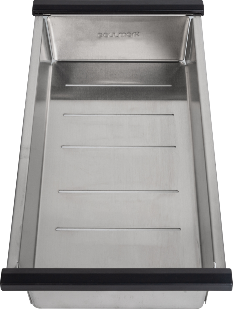 Коландеры Paulmark изготовлены из нержавеющей стали ASIS 304, устойчивы к перепадам температур и к нагрузке. Используются для мытья и размораживания продуктов. Устанавливаются на бортики мойки и в специальные ступеньки моек серии PRO. Размер отверстий в донной части не позволит выпасть даже мелким ягодам и в то же время не препятствует свободному стоку воды. Глубина коландера - 6 см.