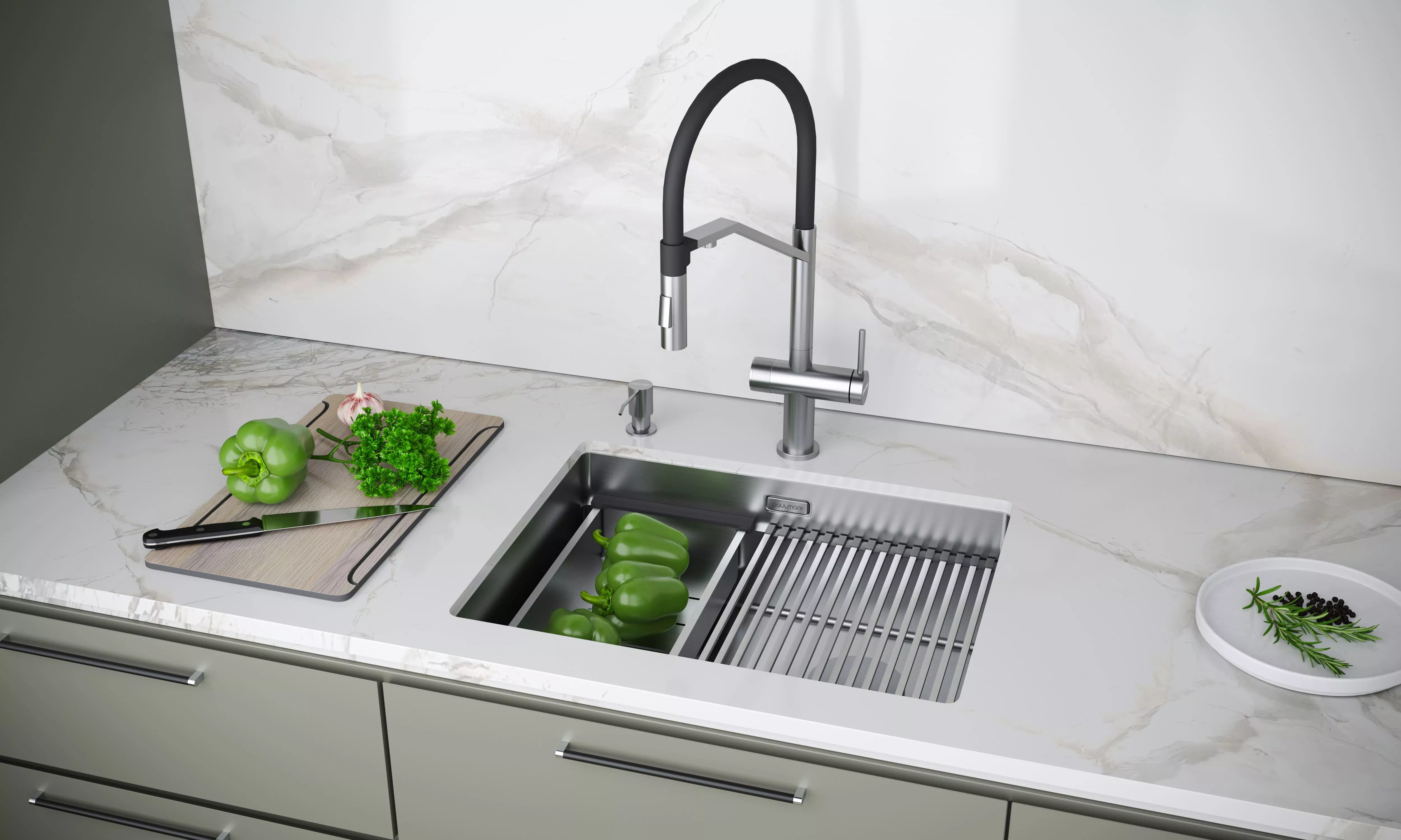 Paulmark (Паульмарк) - российская торговая марка, специализирующаяся на производстве кухонных моек, смесителей, аксессуаров и комплектующих.